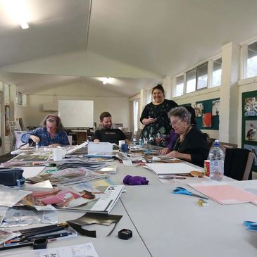 With 11 participants, including our first male member of one of my art workshops PLUS our youngest member ever, a sweet little 5 month old, it was a lovely 3 day experience where we explored our creativity through a Safe Space meditation (based on the work of Dr Diane Divett) and different art exercises such as collage, colour and emotional exploration and using our hands to heal from past hurts and set future goals through art.